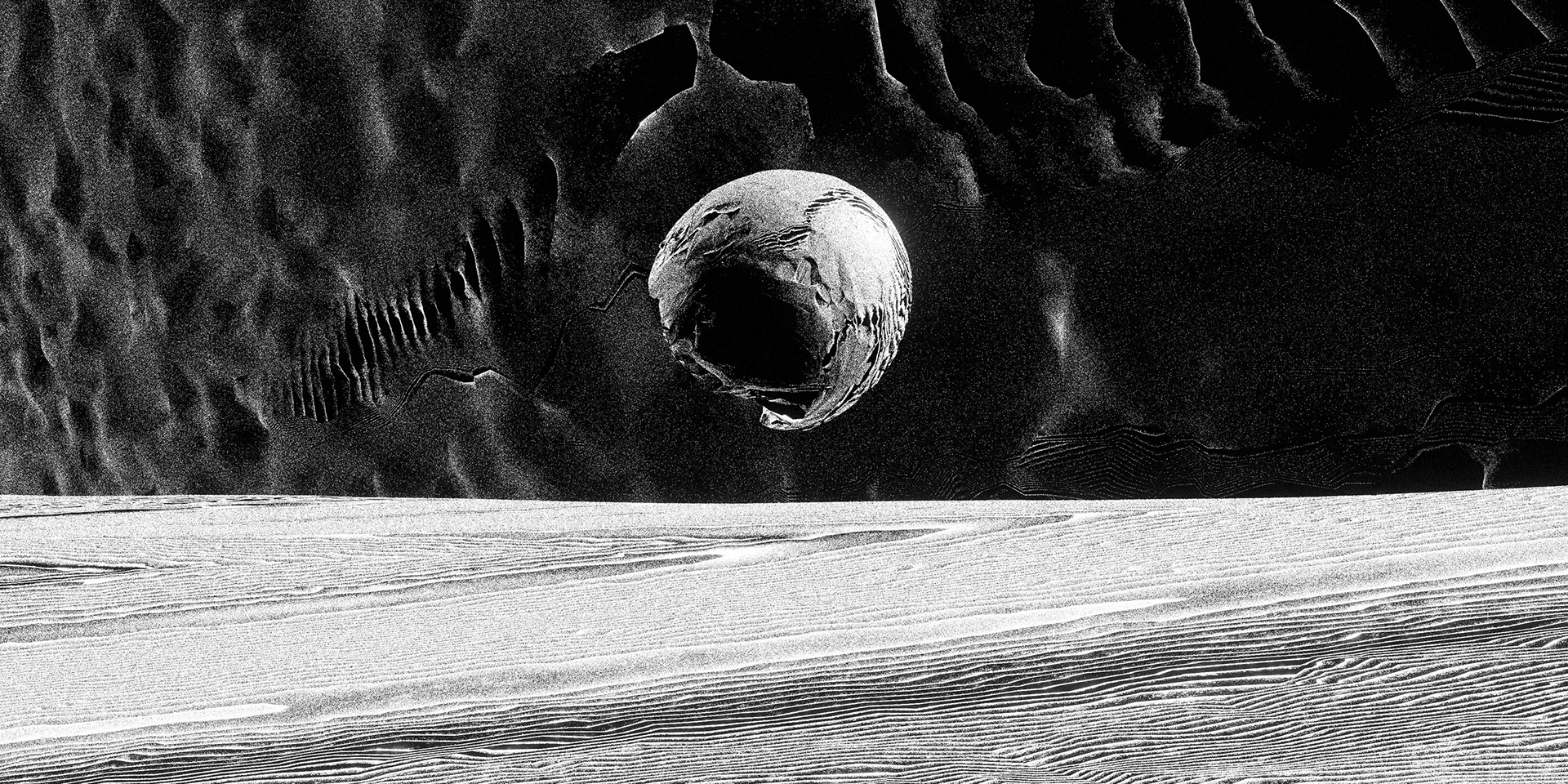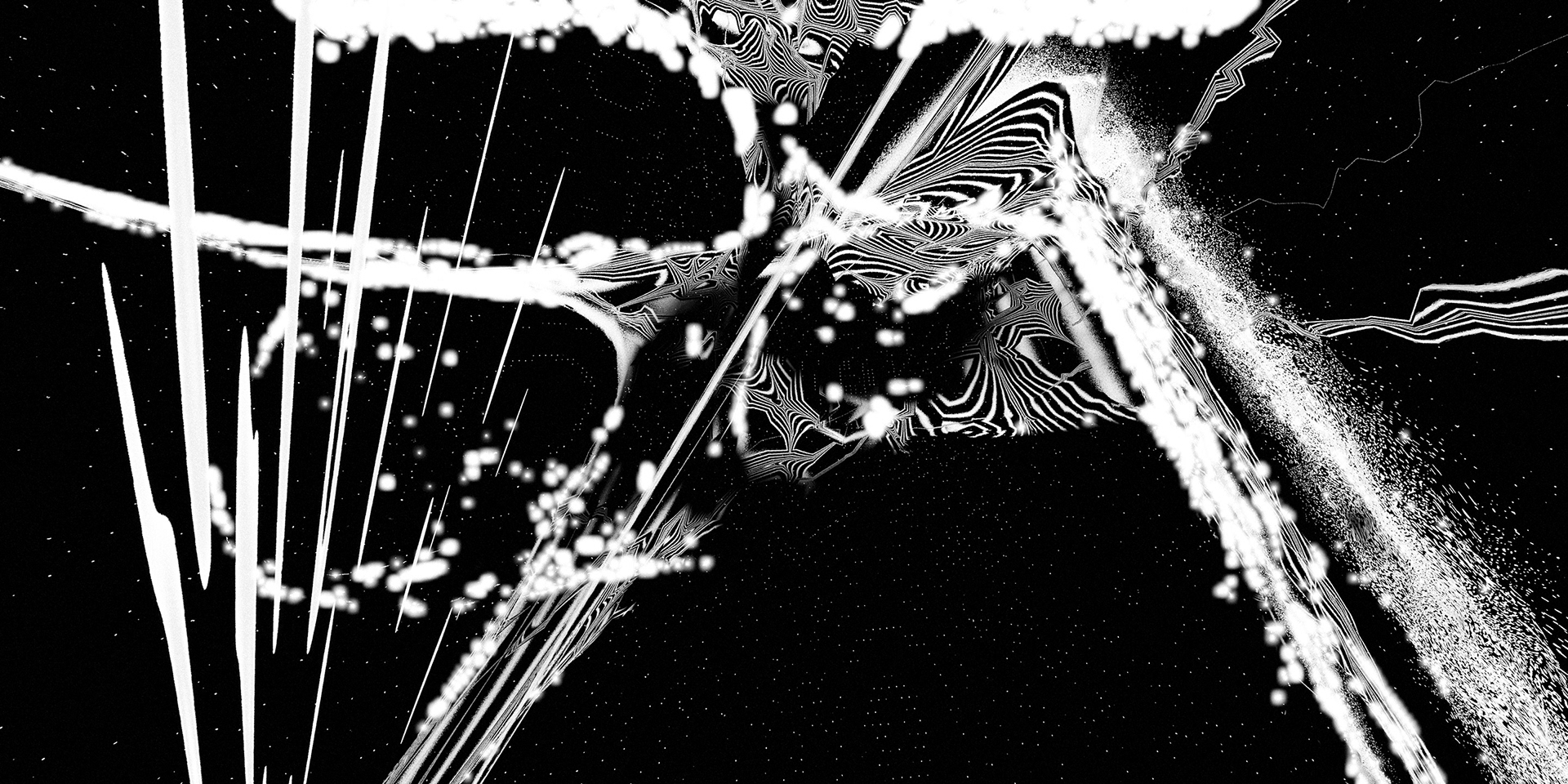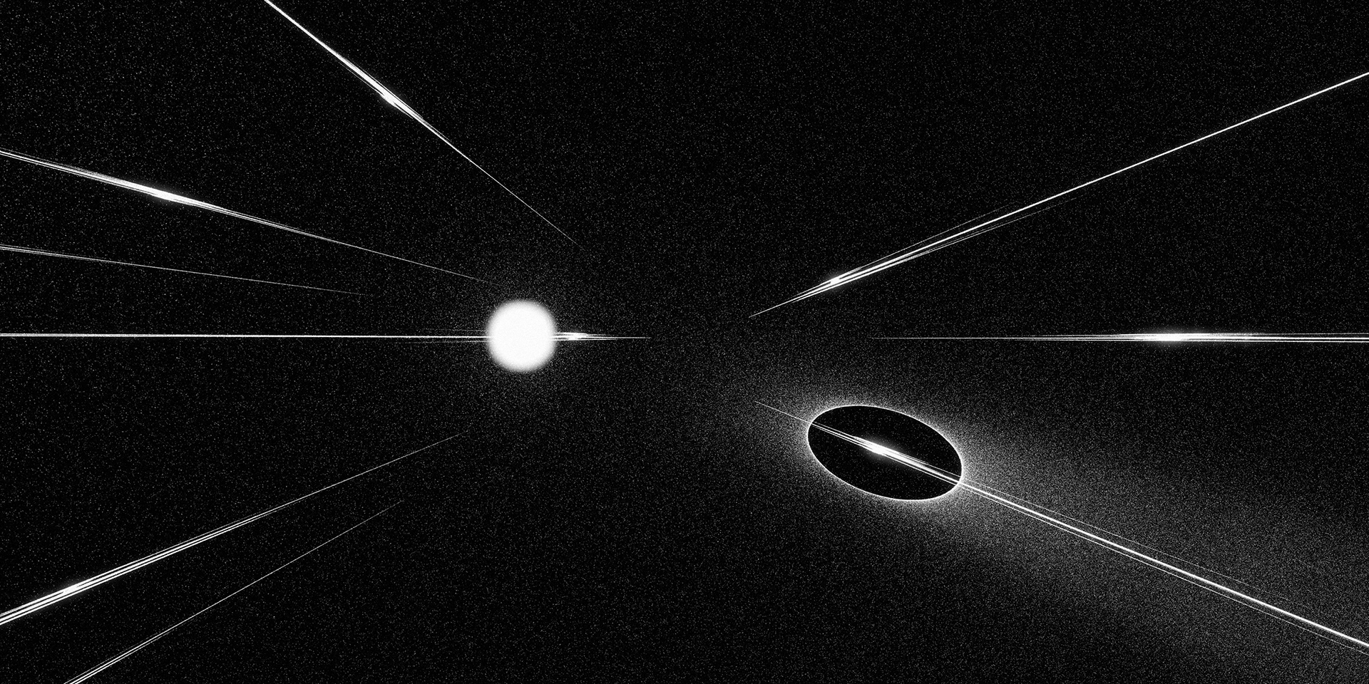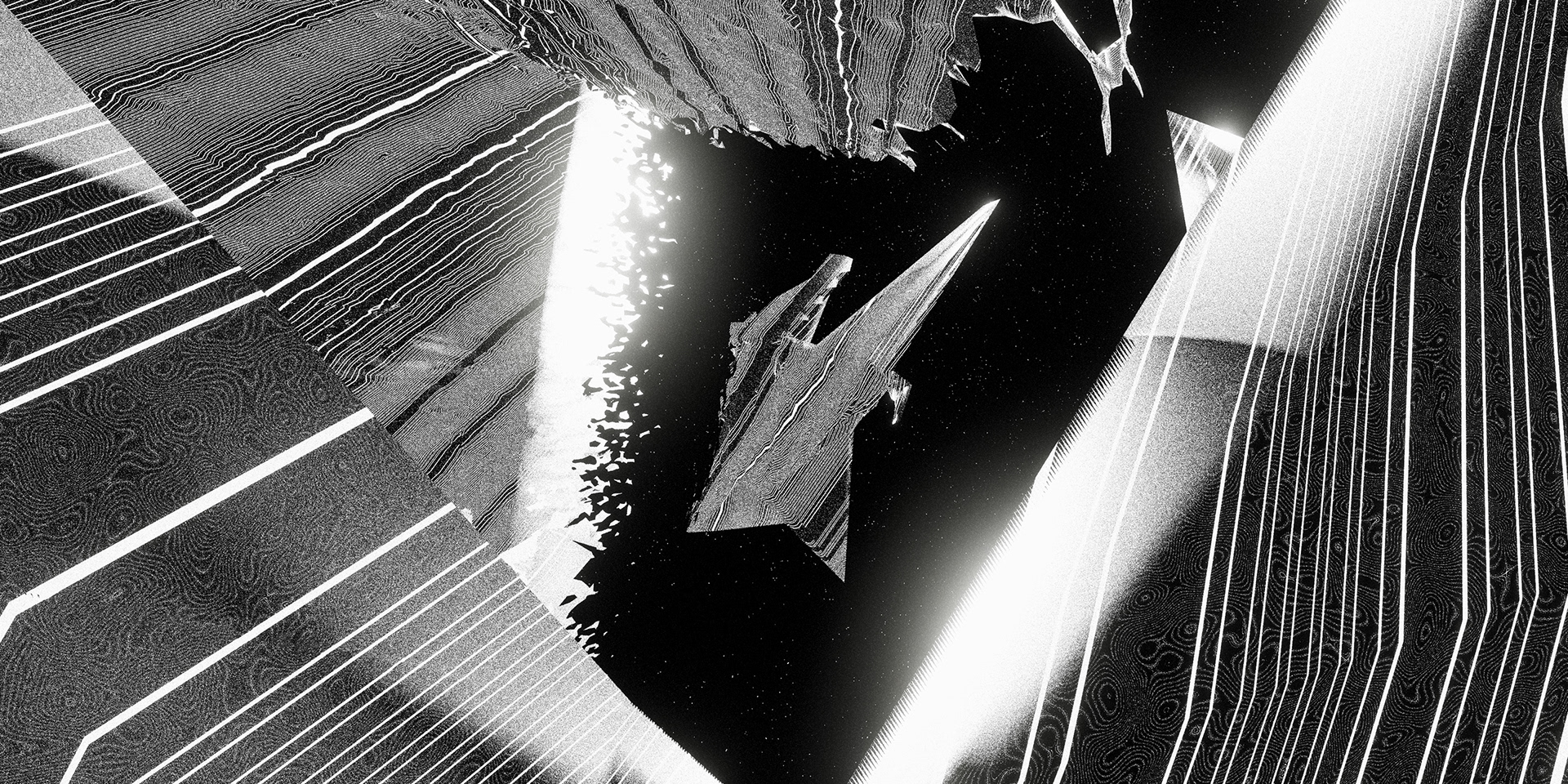 A passage through a shifting universe, where space-time loosens and familiarity falls away into the great black maw. Forms distort and dissolve. Light cuts through the darkness in fleeting moments. What feels solid begins to dissolve into patterns, then noise, then something else entirely.