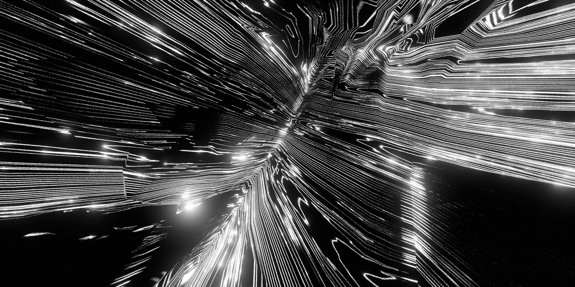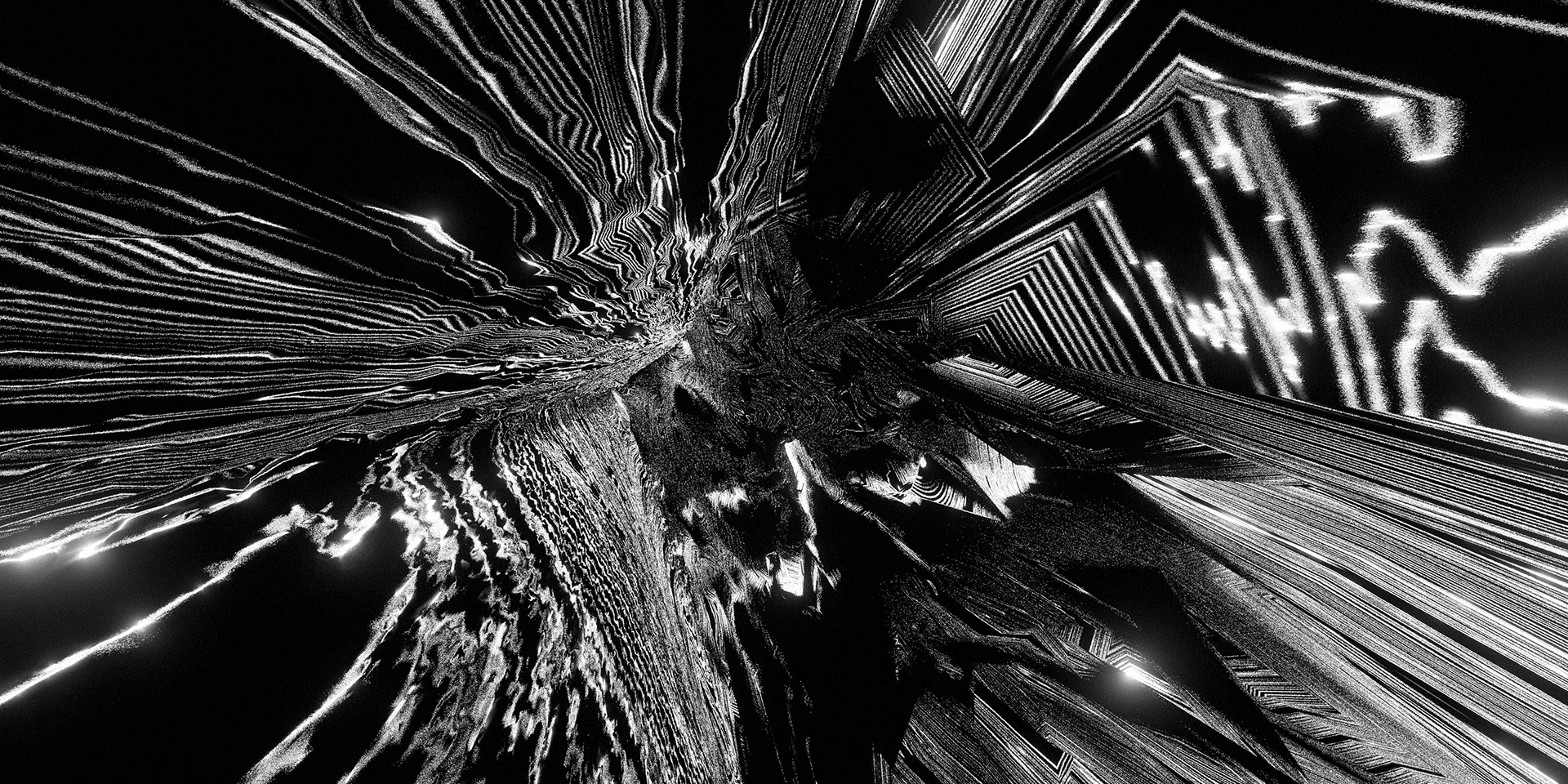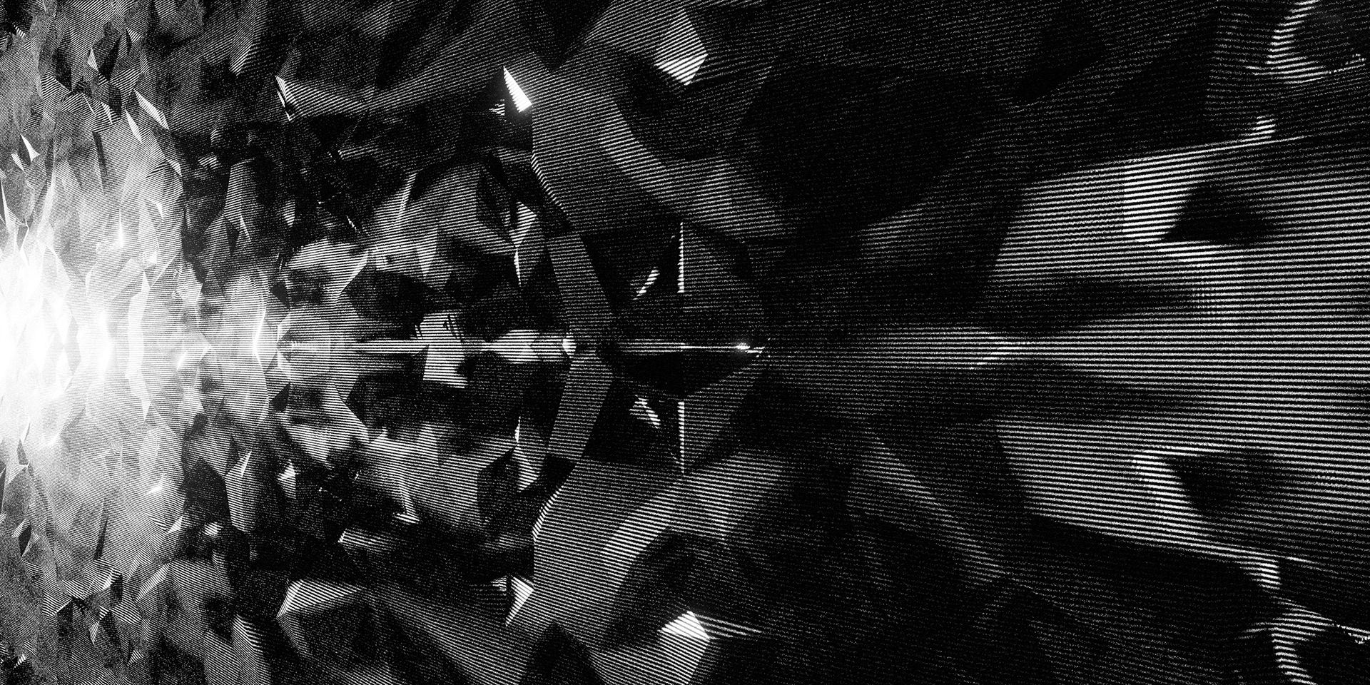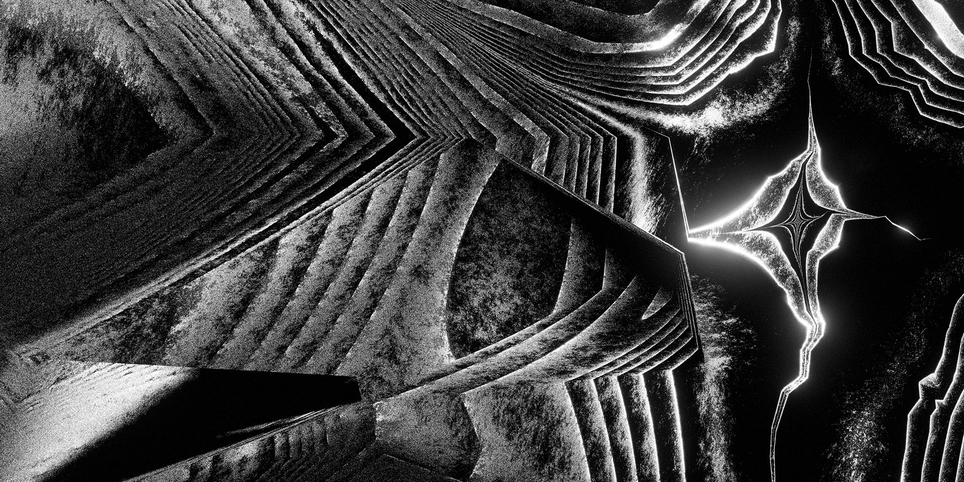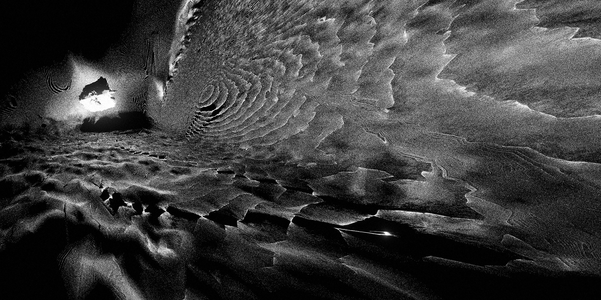A passage through a shifting universe, where space-time loosens and familiarity falls away into the great black maw. Forms distort and dissolve. Light cuts through the darkness in fleeting moments. What feels solid begins to dissolve into patterns, then noise, then something else entirely.